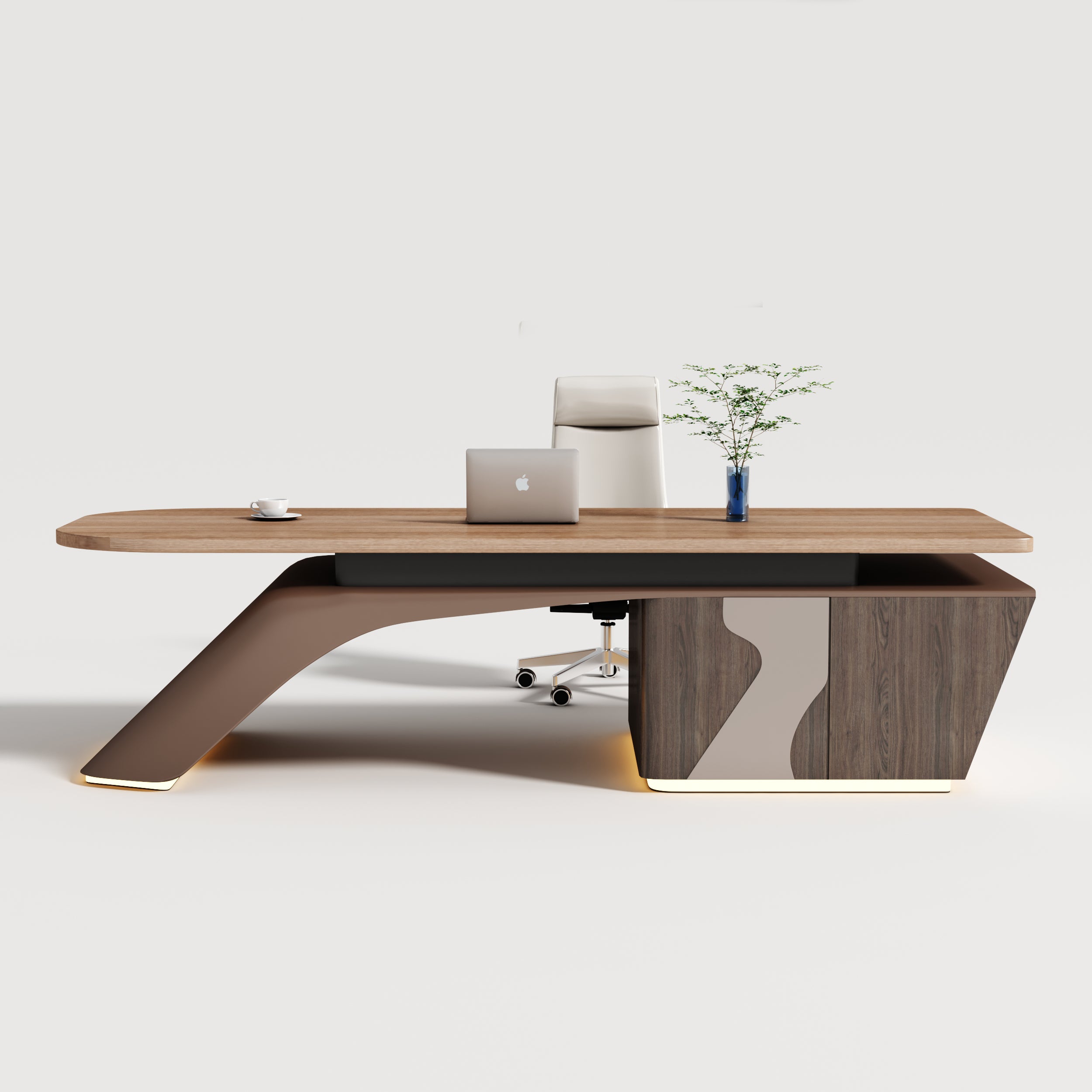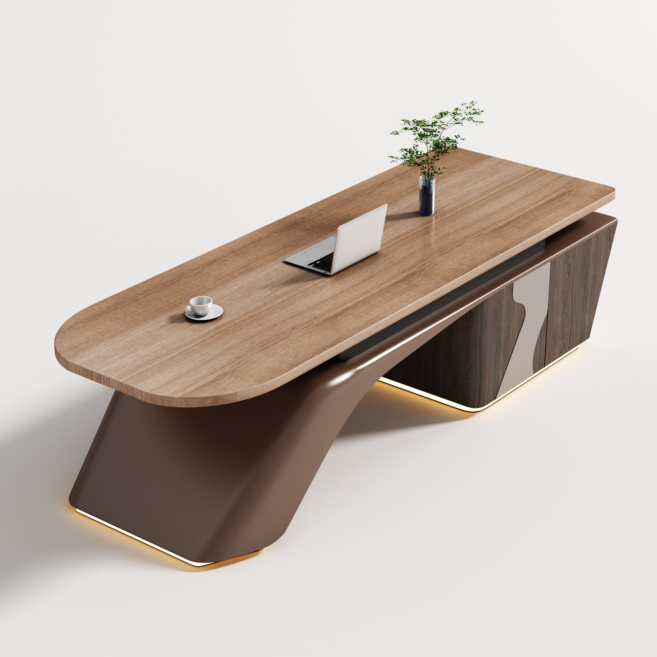 A minimalist executive desk defined by floating proportions and balanced mass, designed for modern leadership offices with architectural clarity. -
